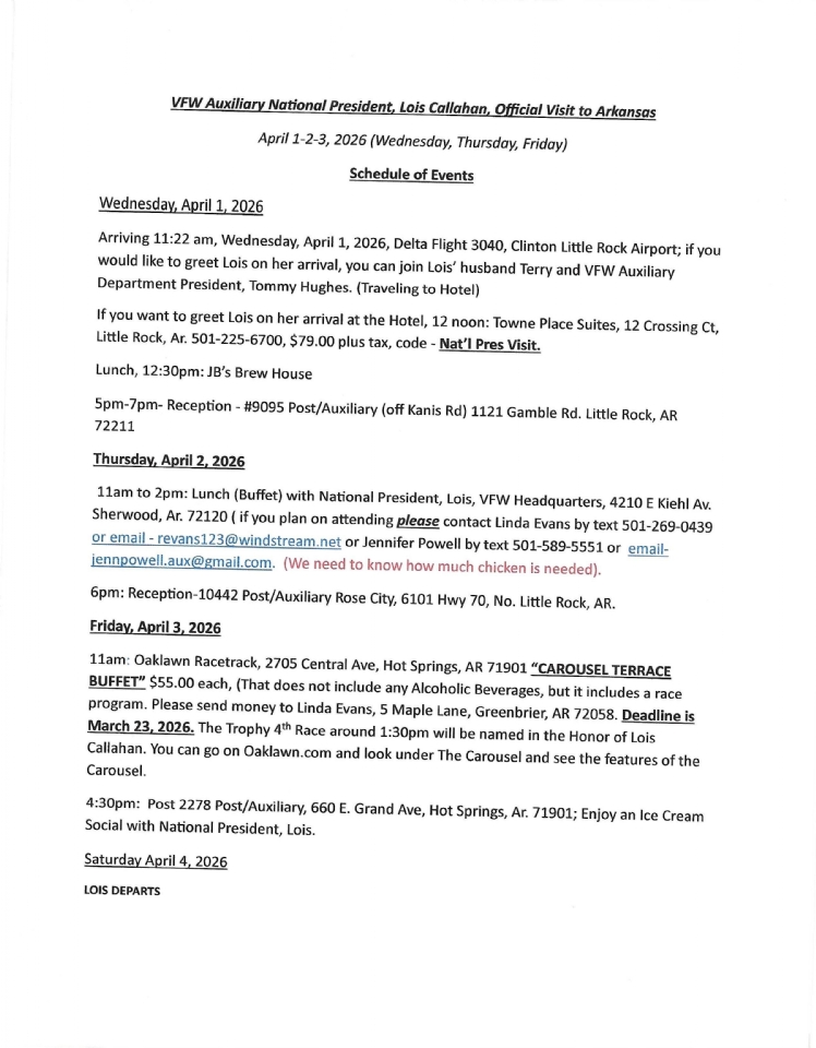 National President Lois Callahan's Visit